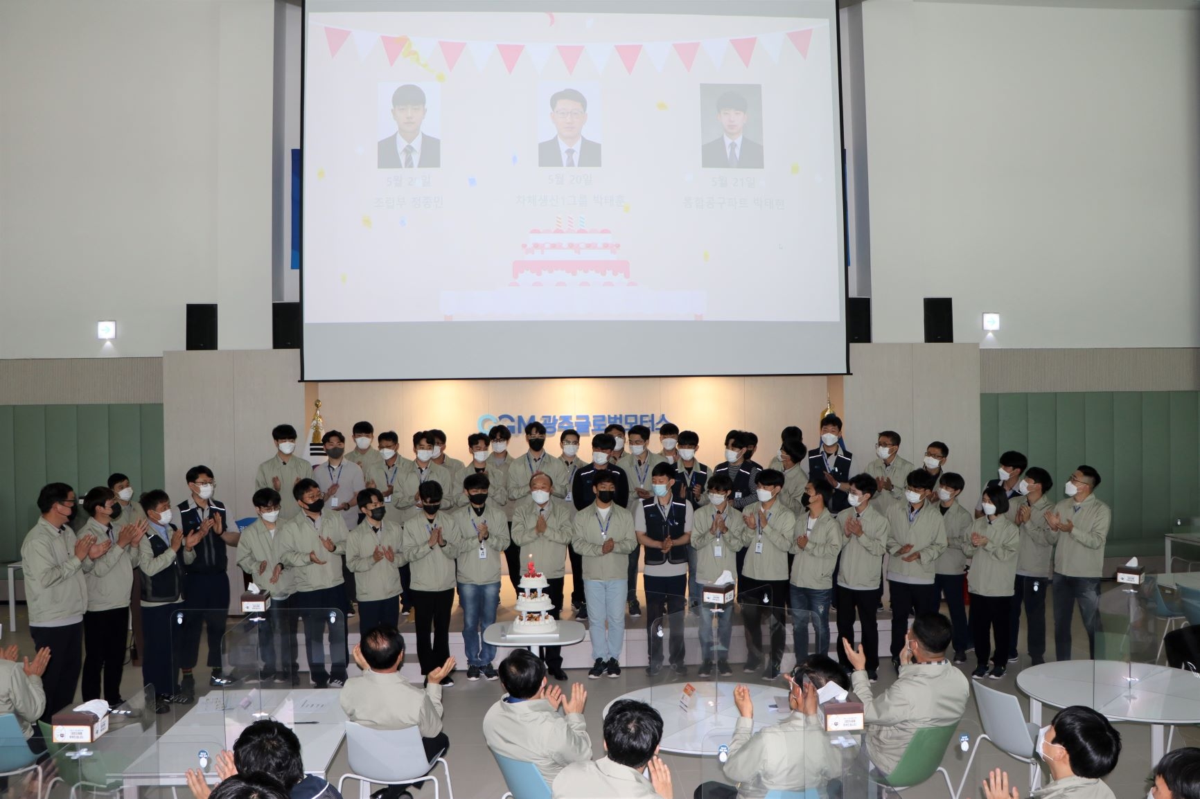 행사 끝에는 5월에 생일을 맞이하는 임직원들이 케이크를 자르고,