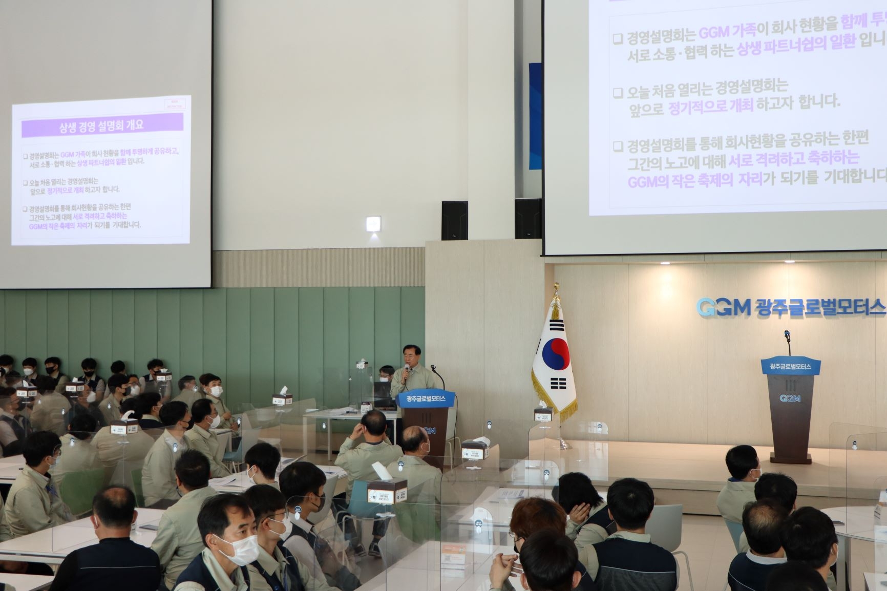 광주글로벌모터스는 5월 18일 경영설명회를 처음 개최하였습니다.