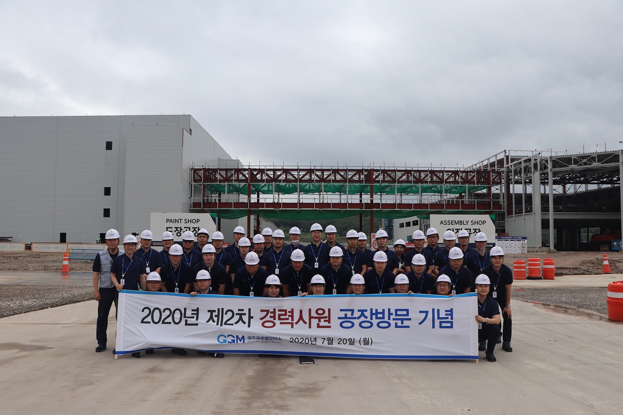 ㈜광주글로벌모터스는 7월 20일 제2차 경력 일반직 입사식을 개최하고, 2차 경력사원들과 함께 빛그린산단 내 자동차공장 건설현장을 둘러보았습니다.