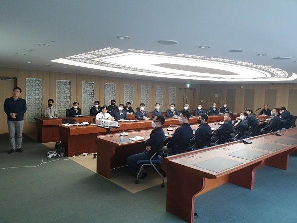박광태 대표이사는 공사장의 안전관리 실태, 근로자의 안전·보호 장구 착용, 비상시 응급 대응체계, 코로나19와 같은 감염병 예방과 방역 등을 모두가 철저하게 지키고 점검하여 단 한 건의 안전사고도 발생하지 않도록 각별한 주의를 당부하였습니다.