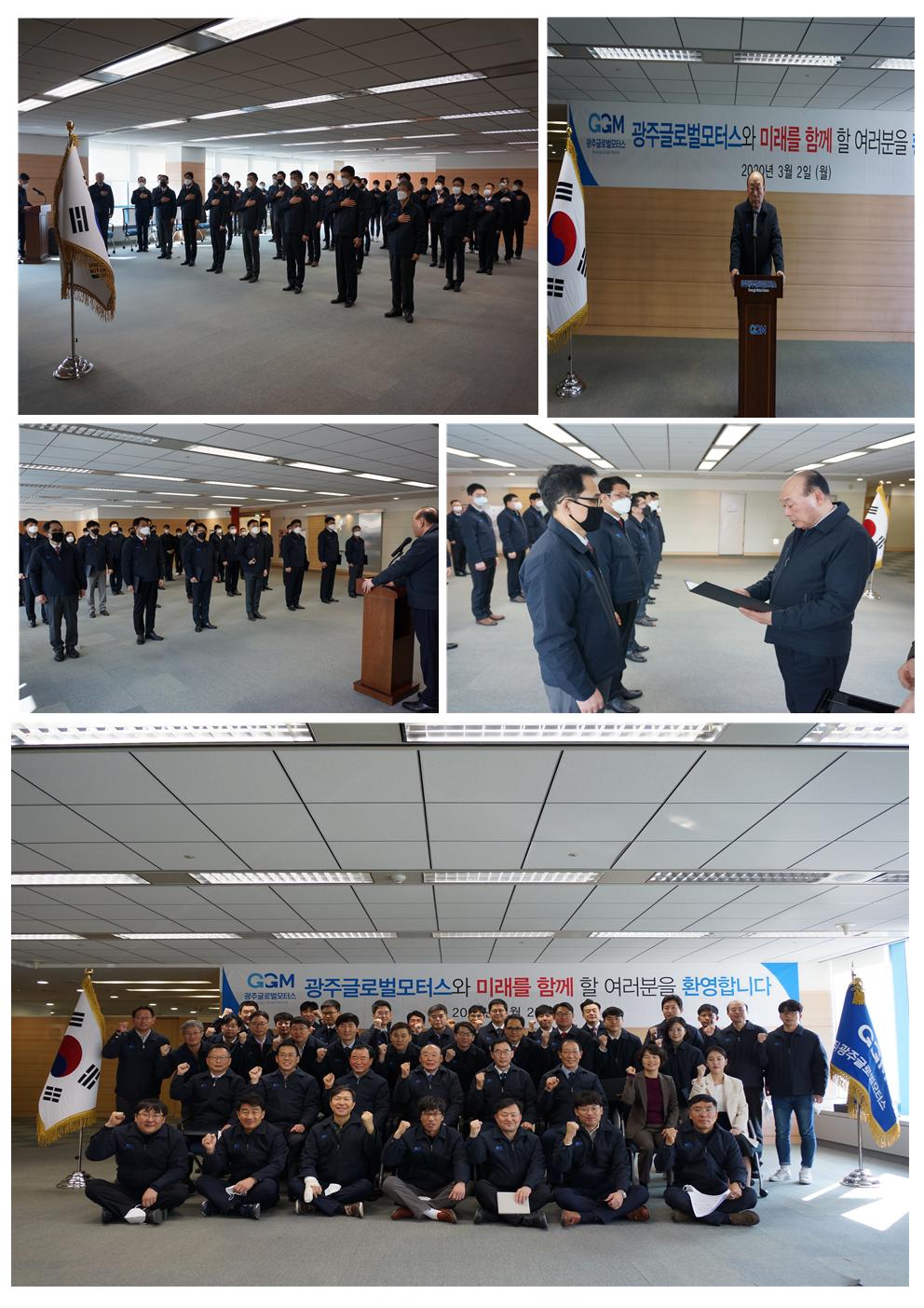 광주글로벌모터스는 3월 2일 제1차 경력사원 입사식을 개최하여 공정하고 투명한 과정을 통해 선발된 ▲사업기획 ▲경영지원 ▲생산 ▲품질관리 등 일반직 네 개 분야의 총 21명의 새로운 가족을 맞이하였습니다.